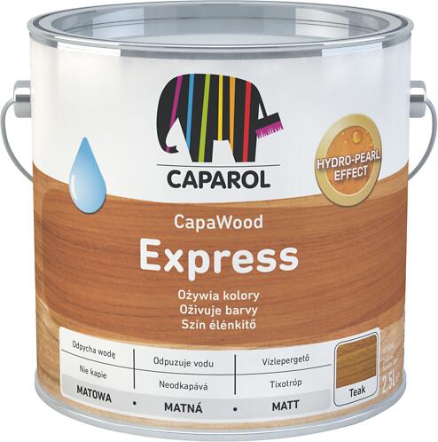 Alkalmas korlátozottan mérettartó és nem mérettartó faszerkezetek (pl. kerítések, erkélykorlátok, fal- és mennyezetburkolatok, autóbeállók, pergolák, faépületek stb. ) színes kialakítására és védelmére. A CapaWood Express ellenáll az időjárás viszontagságainak, megvédi a fát a nedvességtől és egyéb időjárási hatásoktól. Kültérben és beltérben egyaránt felhasználható. Vízbázisú, ökológiai vékonylazúrCseppmentes, (tixotróp) gél állagú konzisztenciaMagas védelem az UV sugárzás ellenA Hydropearl hatásnak köszönhetően a fa felülete gyorsabban száradHatékonyan védi a fa szerkezetét a víz behatolásátólTökéletesen megőrzi a fa természetes erezetétKül- és beltérben is alkalmazhatóKiadósság: 12,5 m 2  /literBázis: Alkidgyanta, szervetlen szinpigmentekkel. Kültében a CapaWood Express színtelen árnyalatban csak a sötét árnyalatok alapozó rétegeként alkalmazható, mivel ellenkező esetben nem biztosított a megfelelő UV elleni védelem. Ne használjon színtelen CapaWood Express vékonylazúrt időjárásnak kitett kültéri faszerkezeteken. Fényességi fok: SelyemmattA fényességi fok és a pontos színárnyalat függ a faanyag típuástól és annak állapotától. Tárolás: Hűvös, fagymentes helyen. Ügyeljen, hogy a doboz megfelelően le legyen zárva. Sűrűség: kb. 1,01 g/cm 3  (színárnyalattól függően) Kiegészítő termék: CapaWood ExpressGrund