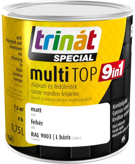 Kültérre és beltérre : Legyen szó kültéri csatorna vagy rácsok festéséről vagy egy egyszerű beltéri műanyag könyöklő felújításáról a multiTOP nem fog kudarcot vallani! Korróziógátló : Alumínium, acél és bármilyen vas felület átvonására alkalmas, korrózió gátló alapozó használata nélkül. Gyorsan száradó : Víz bázisú, így rendkívül gyorsan szárad. Felhordás módja : Kiválóan szórható, ecsettel, hengerrel is felvihető. Vizes bázisú : Beltéren is nyugodtan használhatja, a régi erős oldószeres zománcfestékek szaga már a múlté! Fényességi fokozata : Matt Kiadósság : maximum 10 m2 / liter egy rétegben Javasolt rétegszám : 2 - 3 Száradási idő 23°C-on : 2 óra Átfesthetőség 23°C-on : 4 órahttps://www. youtube. com/watch?v=5midG6ycD_M